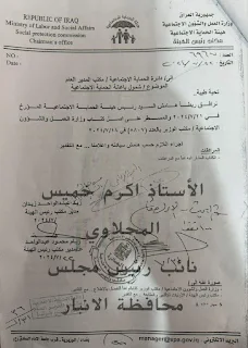 الشيخ " اكرم خميس المحلاوي " يستحصل موافقة معالي وزير العمل والشؤون الاجتماعية على شمول عدد كبير منهم براتب الرعاية الاجتماعية ( تقديم جديد ) .