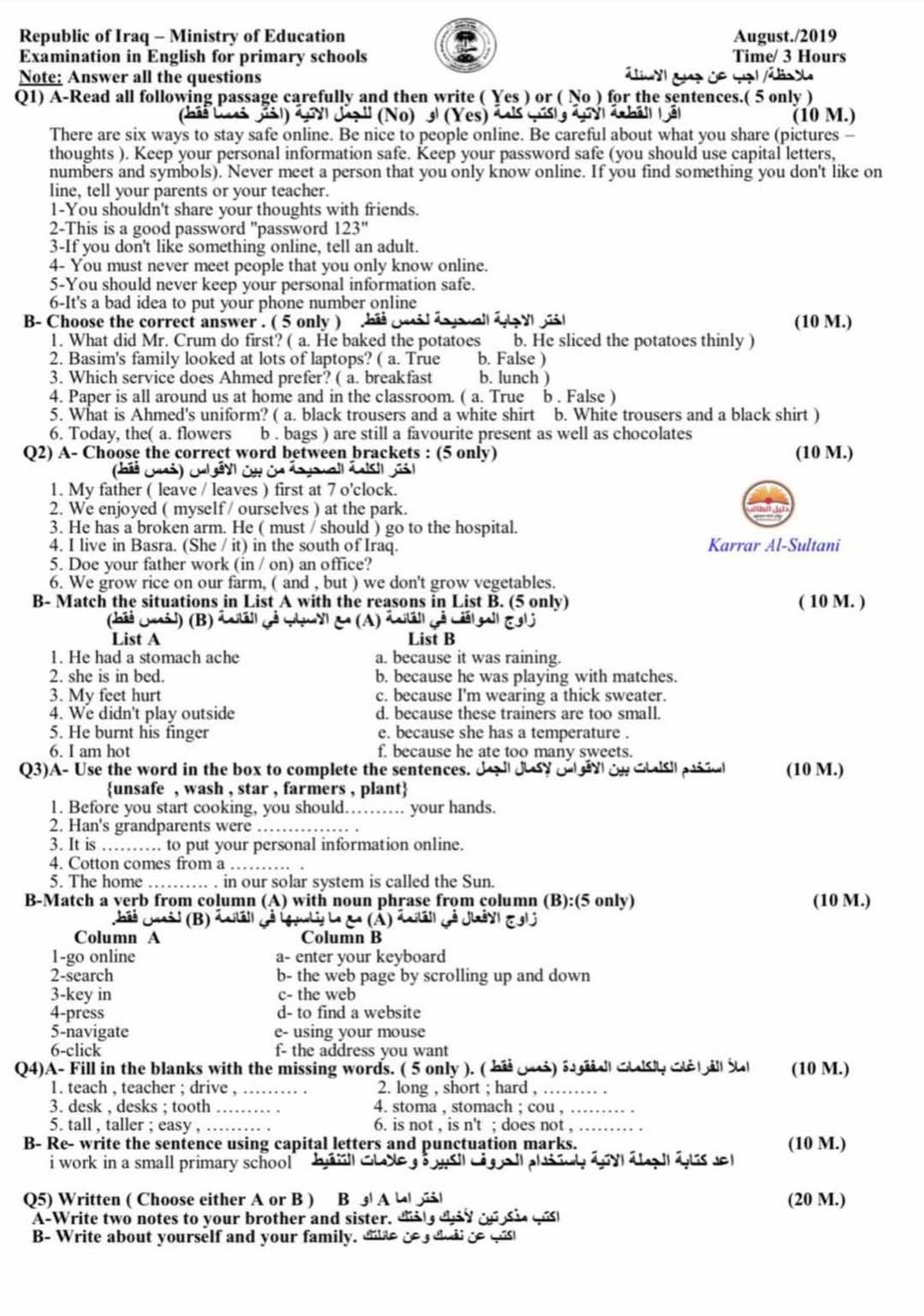 بعد اقتراب موعد امتحانات السادس الابتدائي في مادة اللغة الانكليزية في العراق سواء في العاصمة بغداد او باقي المحافظات.